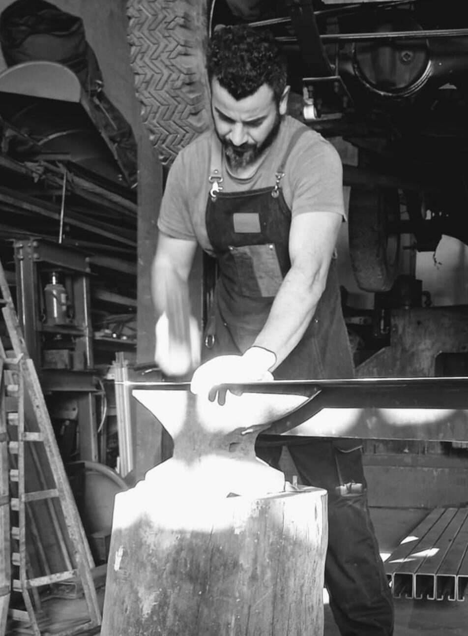 Pedro is an artist whose skilled hands bring metal to life with unwavering passion. In his workshop, fire and force combine to shape his visions: iron comes to life, curving and twisting into organic or geometric shapes that seem to defy the very nature of the material.